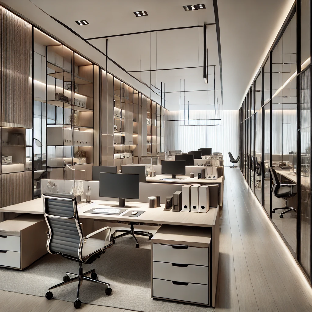 Projetos personalizados para escritórios que valorizam a produtividade e o bem-estar dos colaboradores, com móveis planejados que otimizam o uso do espaço e proporcionam conforto e praticidade.